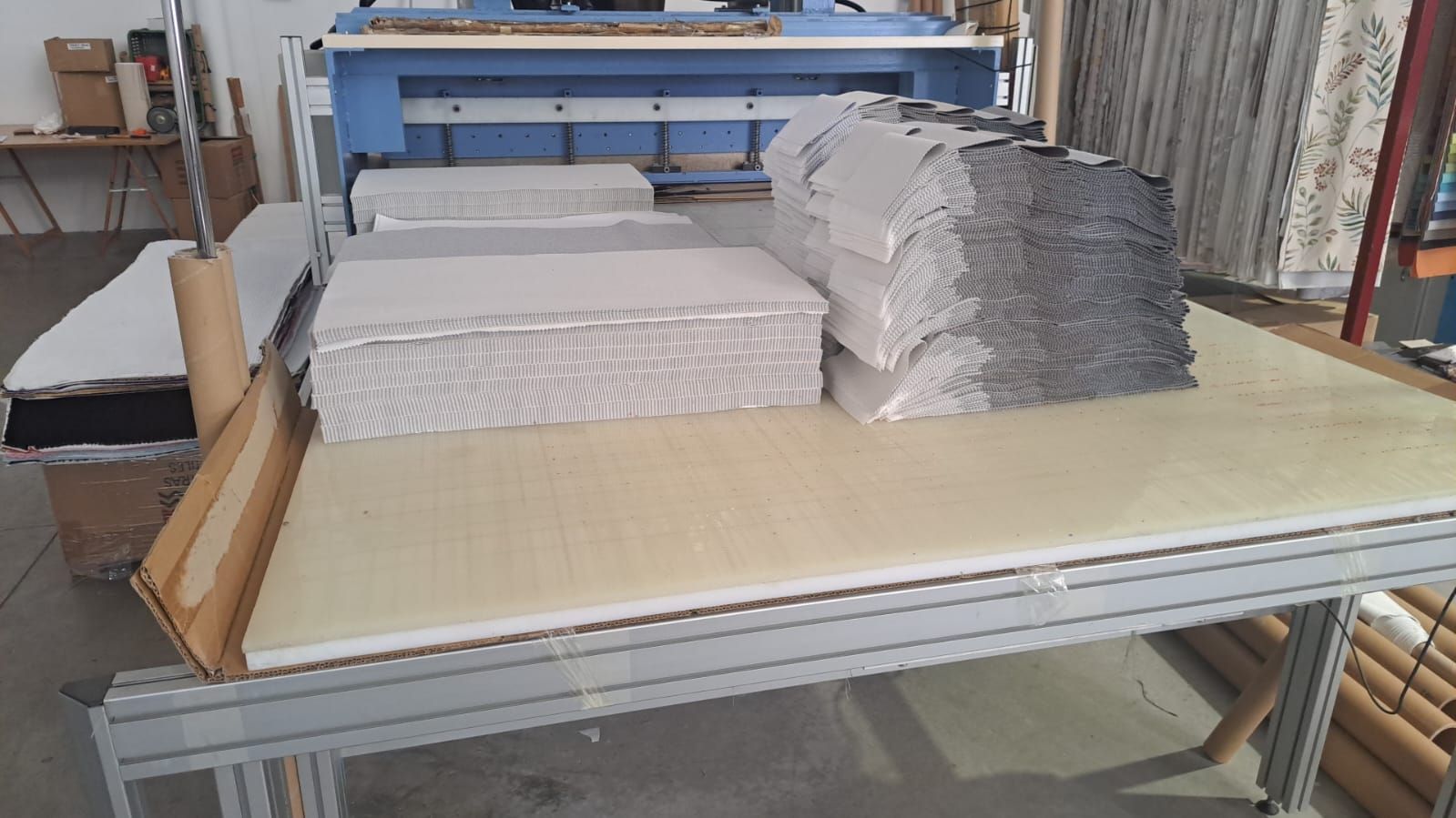 Nos encargamos de todo el proceso, desde la investigación hasta el desarrollo y presentación del muestrario. Nuestros clientes proporcionan la tela, y nosotros nos encargamos de todo lo demás. Nuestros servicios incluyen la manipulación de materiales como corte, troquelado, pegado, laminado, encapsulado y creación de maquetas, asegurando que cada detalle sea ejecutado con la mayor precisión.